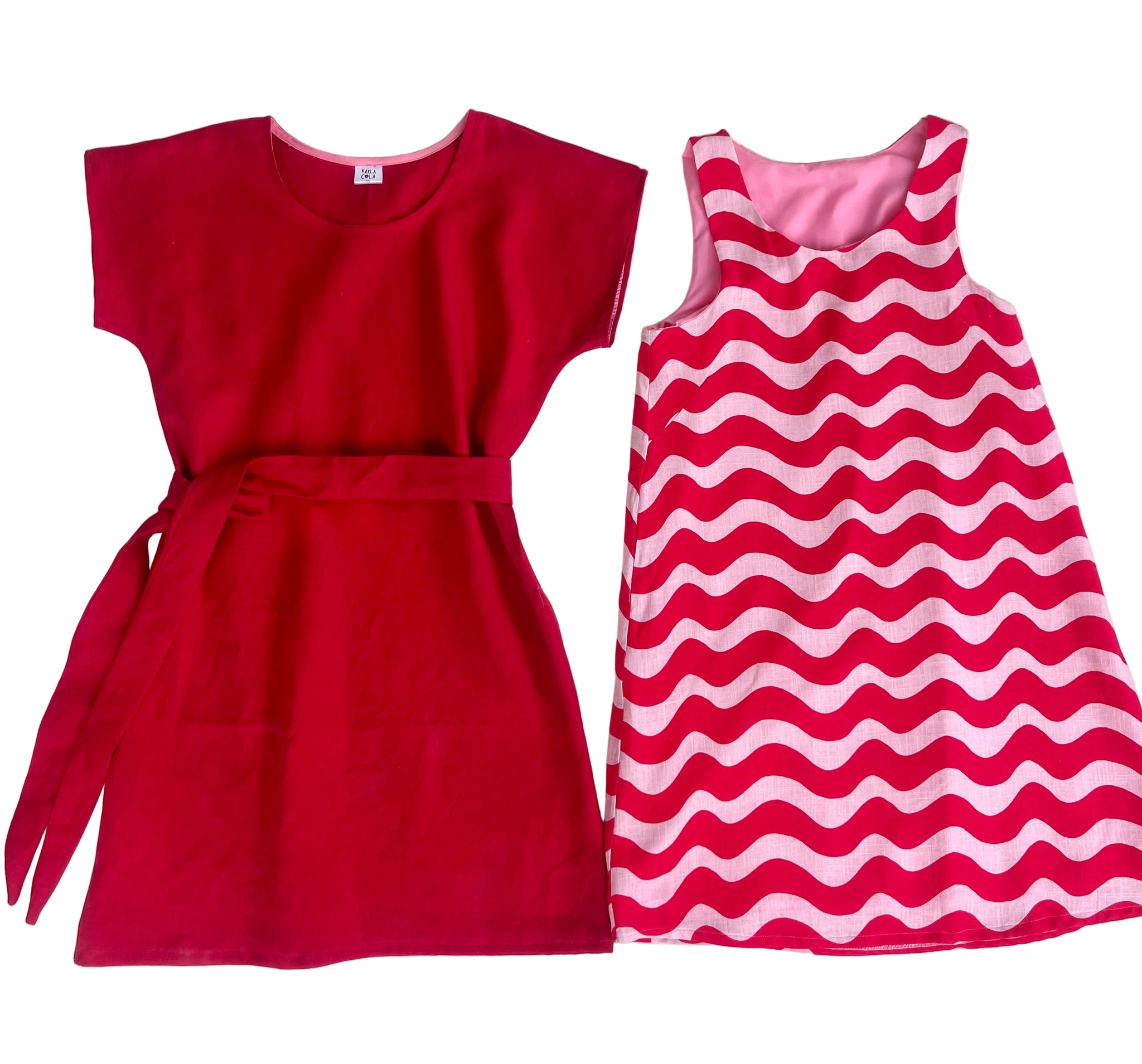 Shown is a example in solid red but the dress will be the red and pink design