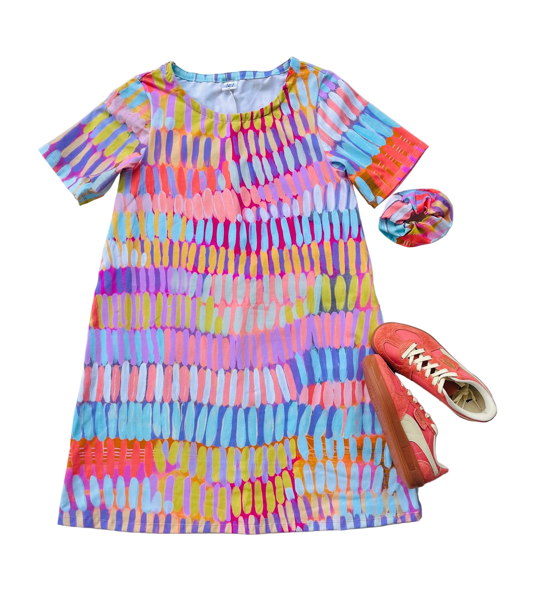 Because these swing dresses are handmade here in Australia, exact placement of the pattern is unique to each individual item, so the dress you receive may be different to the one you see here, meaning you have a special piece just for you!